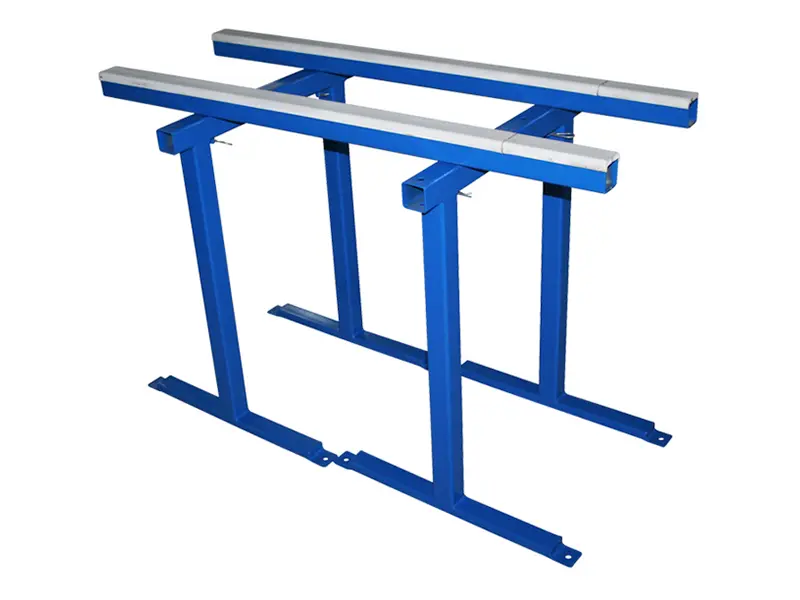 The Aardwolf Trestles are portable but can be dyno-bolted to the floor for a permanent position. It can also be used on job sites or for factory fabrication. The rubber covering the rails is UV, ray, acid, and mark resistant.
