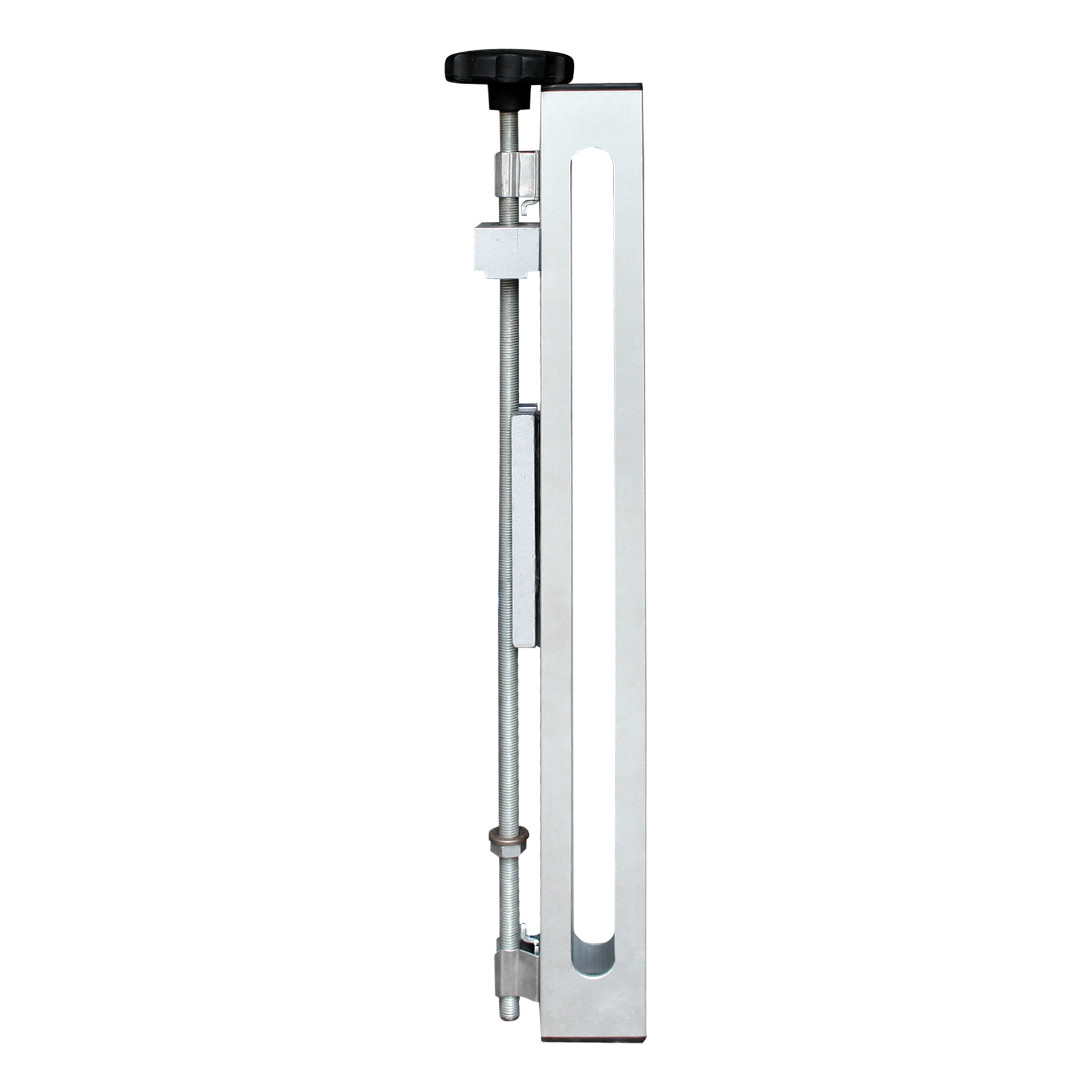 Lightweight aluminium frame. Rubber bottom to protect countertop surfaces. Push the button thread to release the T-nut for the quick positioning of the nut on a hanging rod.